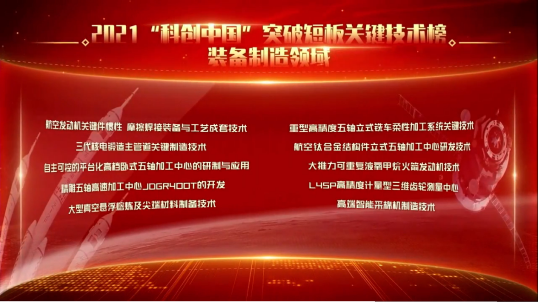 日前,由中国科协主办的2021“科创中国”共遴选出“先导技术榜”100项、“突破短板关键技术榜(装备制造领域)”10项、“产学研融通组织榜”10项、“科技创业投资机构榜”1...