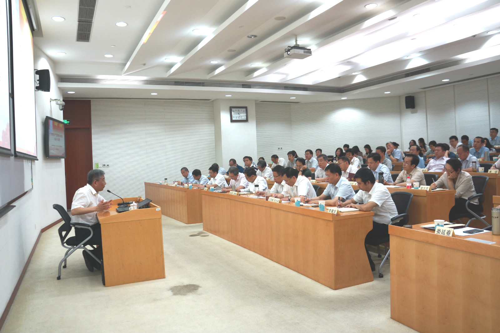 为扎实开展“不忘初心、牢记使命”主题教育,贯彻落实国资委党委主题教育各项工作要求,6月10日至6月28日,集团党委在中央党校(国家行政学院)举办了“不忘初心、牢记使命”主题教育领导干部专题培训班。培训班分两期,每期5天,集团领导班子成员、二级单位班子成员、董监高人员、党群人事部门负责人以及总部中层以上领导干部共计140余人参加了培训。党委书记、董事长、总经理王德成主持了开班式。
